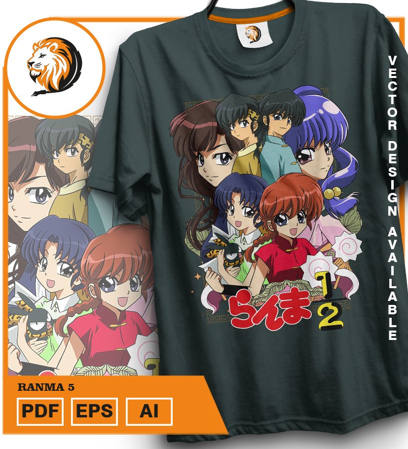 Plantilla diseño de camisetas vectoriales de anime Ranma 5