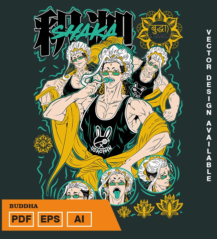 Plantilla diseño de camisetas vectoriales de anime Record budda