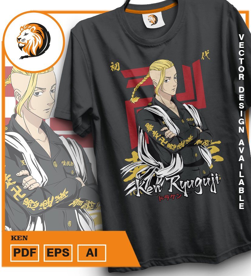 Plantilla diseño de camisetas vectoriales de anime revengers ken