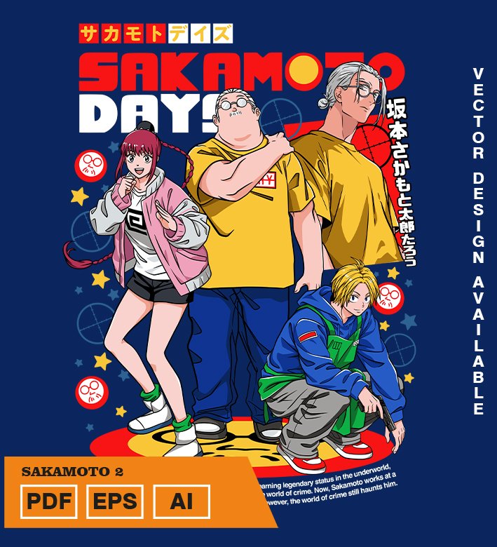 Plantilla diseño de camisetas vectoriales de anime Sakamoto 2