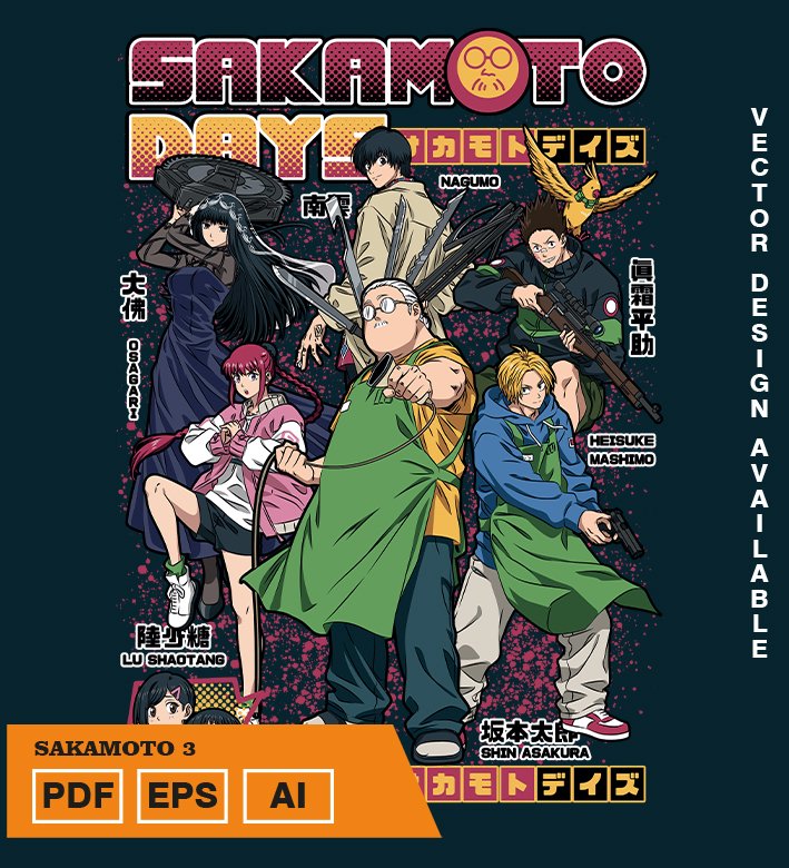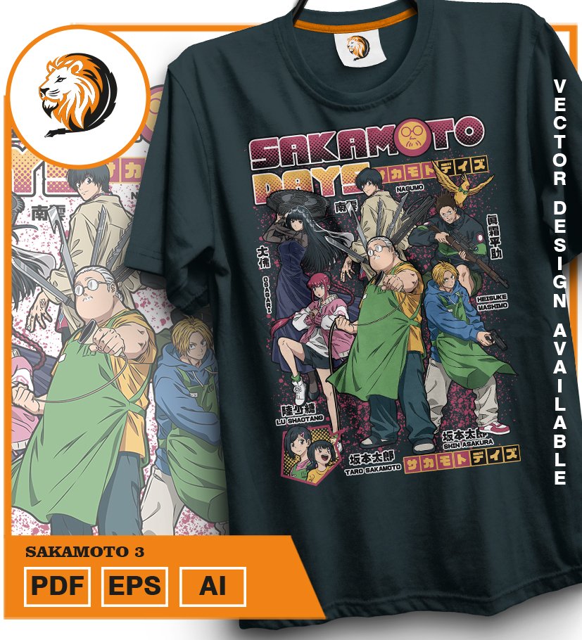 Plantilla diseño de camisetas vectoriales de anime Sakamoto 3