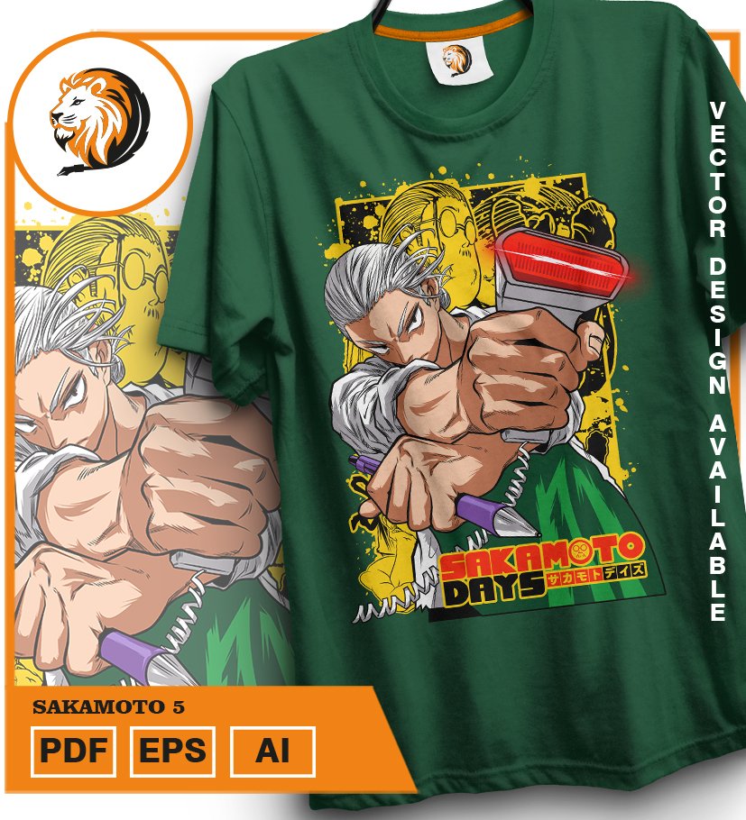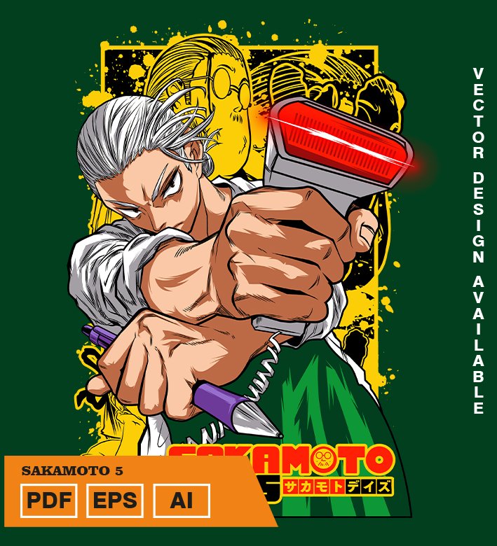 Plantilla diseño de camisetas vectoriales de anime Sakamoto 5