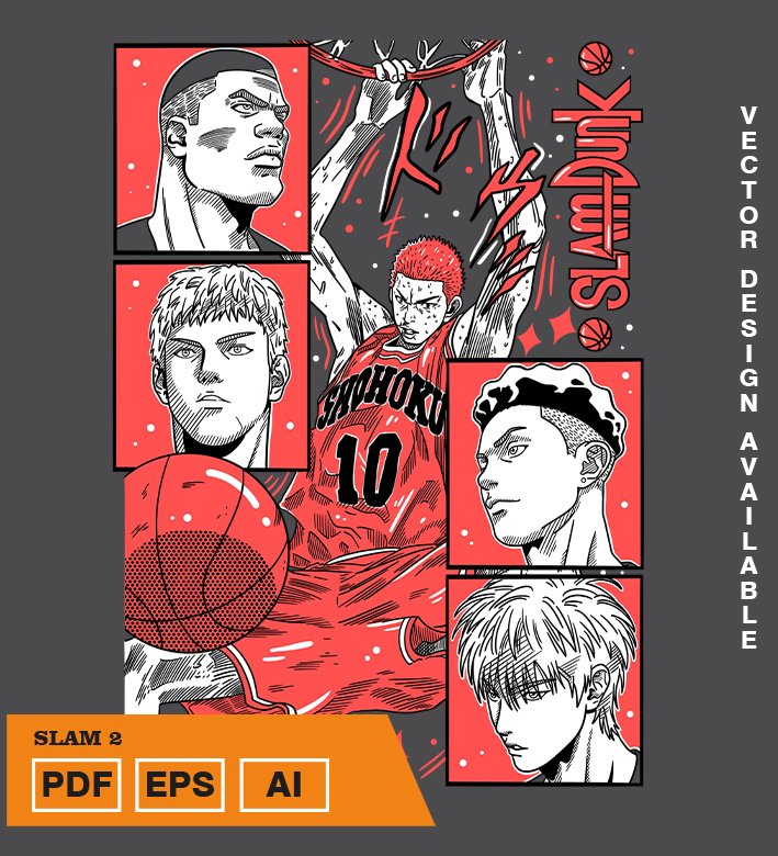 Plantilla diseño de camisetas vectoriales de anime slam 2