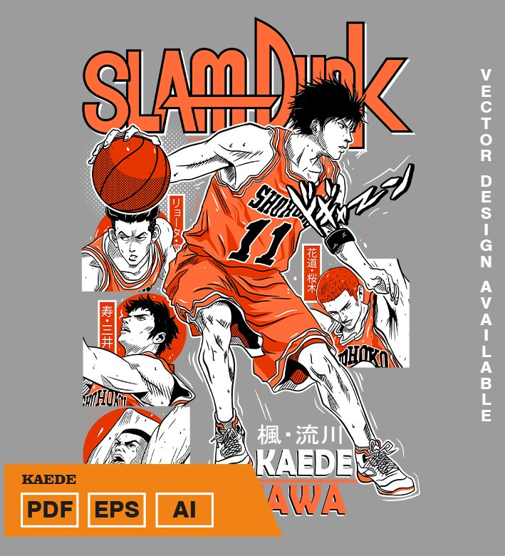 Plantilla diseño de camisetas vectoriales de anime slam kaede