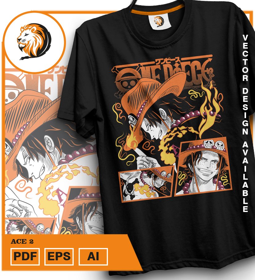 Plantilla diseño de camisetas vectoriales de anime Una Pieza Ace 2