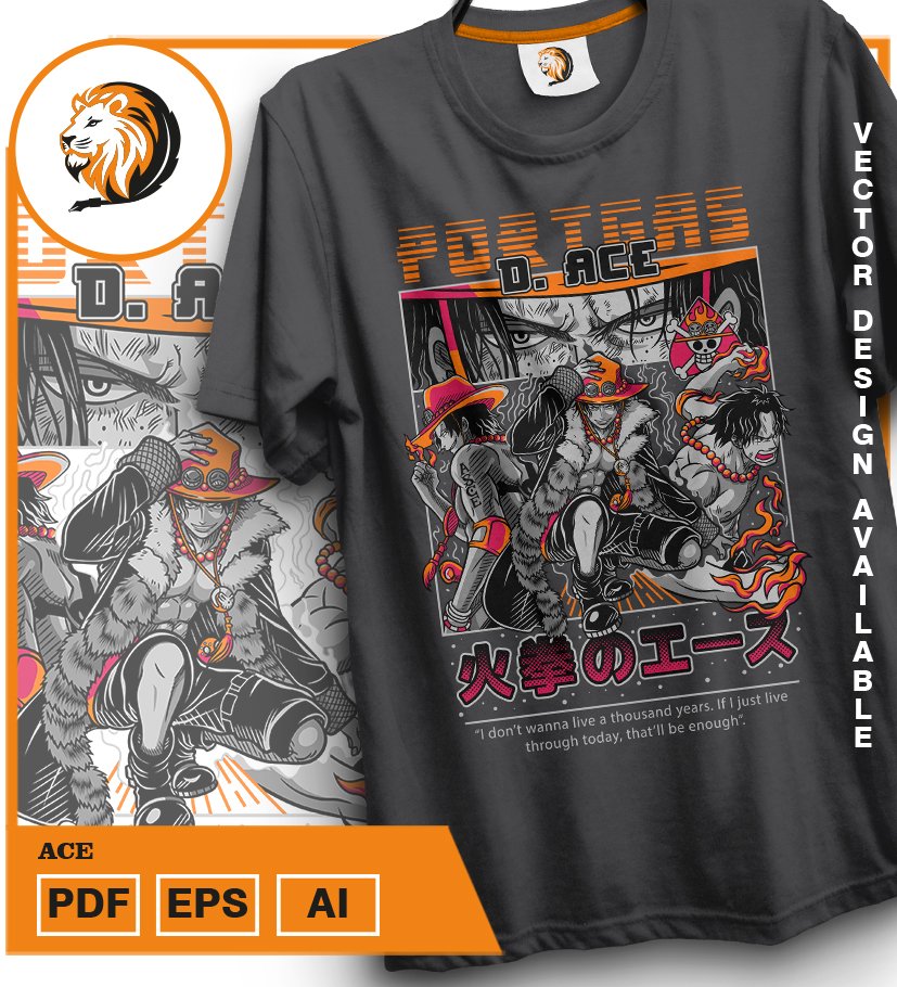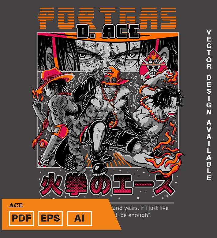 Plantilla diseño de camisetas vectoriales de anime Una Pieza Ace