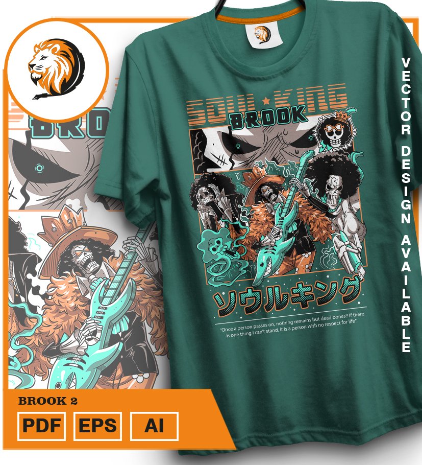 Plantilla diseño de camisetas vectoriales de anime Una Pieza Brook 2