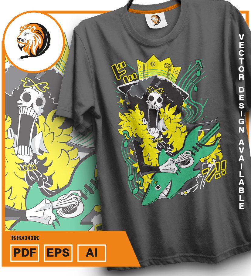 Plantilla diseño de camisetas vectoriales de anime Una Pieza Brook