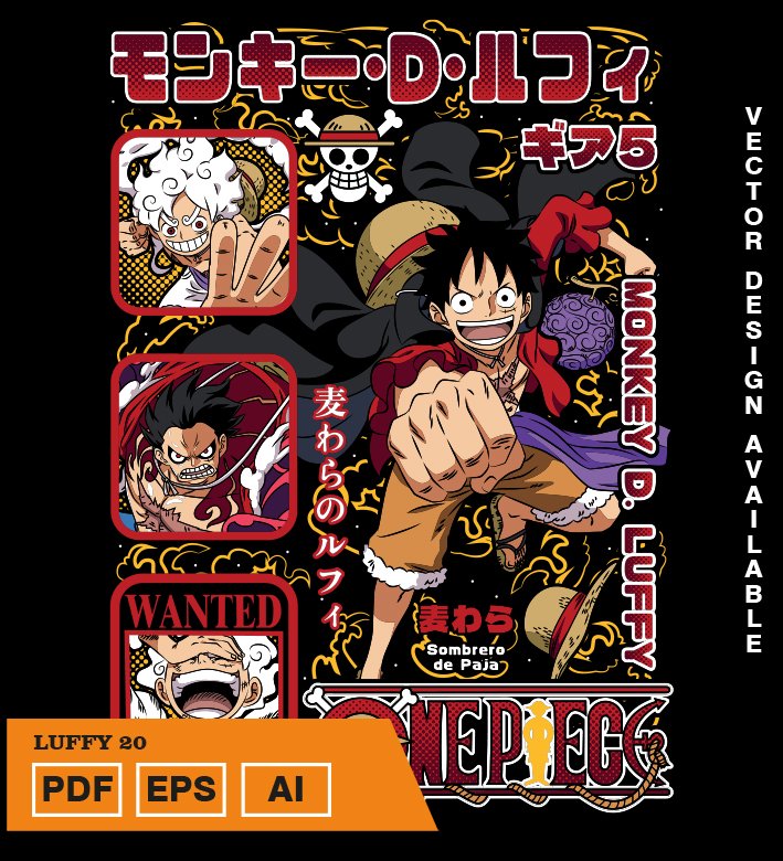 Plantilla diseño de camisetas vectoriales de anime Una Pieza luffy 11
