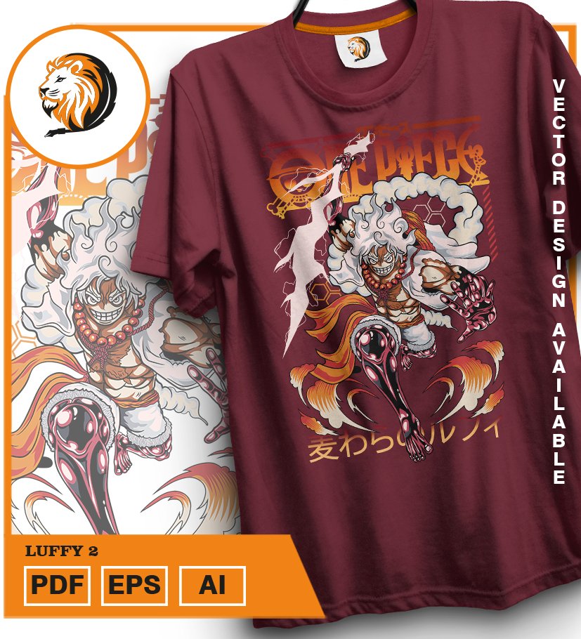 Plantilla diseño de camisetas vectoriales de anime Una Pieza luffy 2