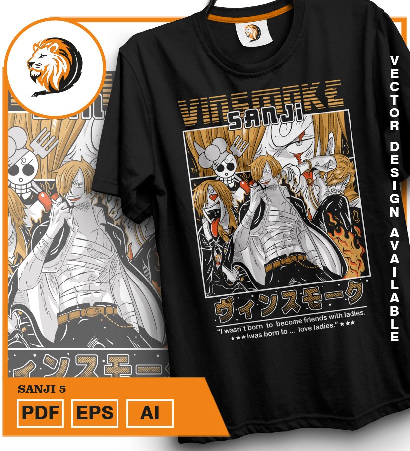Plantilla diseño de camisetas vectoriales de anime Una Pieza Sanji 3