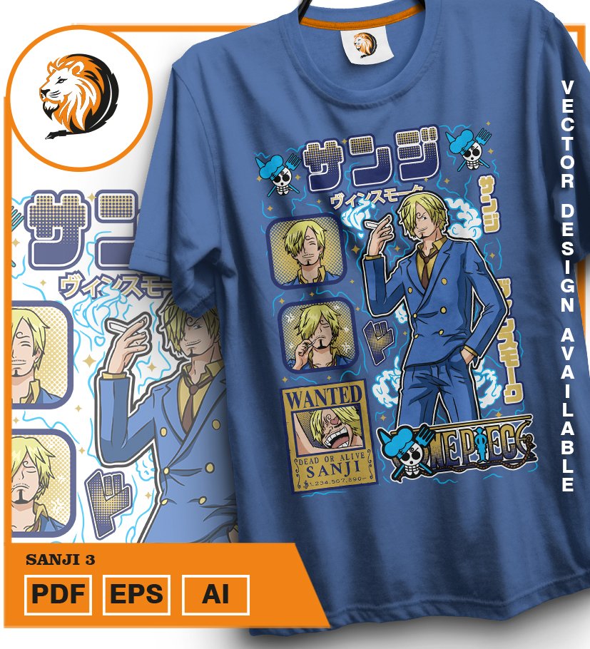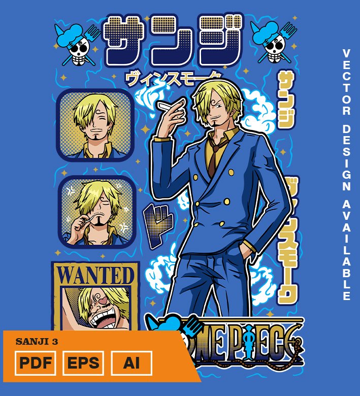 Plantilla diseño de camisetas vectoriales de anime Una Pieza Sanji 4