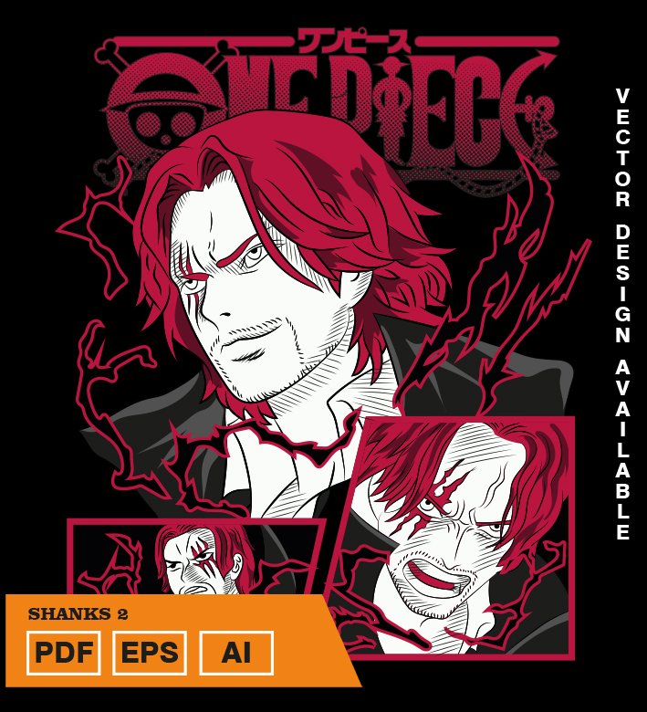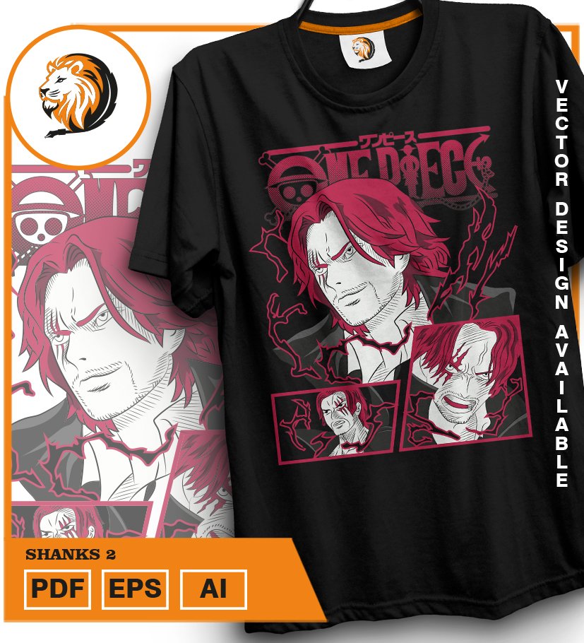 Plantilla diseño de camisetas vectoriales de anime Una Pieza Shank 2
