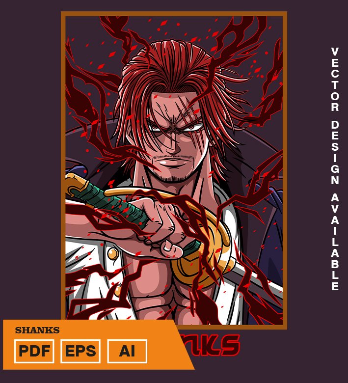 Plantilla diseño de camisetas vectoriales de anime Una Pieza Shank